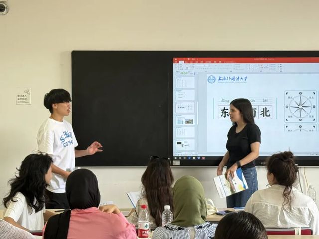 每天上午,来自日本的营员在上海外国语大学虹口校区进行系统化中文学习。课程以实用交际为核心,涵盖语音矫正、情景对话及中国文化专题。营员们从最基础的自我介绍学起,逐步掌握介绍中国美食、城市方位等实用对话内容。最令人惊喜的是大阪产业大学孔子学院的郷谷樹平同学——从最初完全不敢开口说中文,到后来每次课堂都积极举手,最终能够自信地站在讲台前用中文介绍家乡大阪:“大阪有美味的大阪烧和环球影城,欢迎大家来玩!”这样的转变让师生们都为他鼓掌。“我们的中文教师特别注重互动教学,”大阪产业大学孔子学院带队教师邓皓说道,“课堂上设计了餐厅点餐、地铁问路等丰富的角色扮演活动,这种沉浸式的教学方法让学生们从害羞到主动开口,这就是最好的教学成果。”