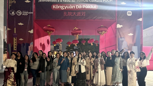 当地时间2025年11月6日至8日,秘鲁天主教大学孔子学院举办了第八届“孔院大派对”。活动连续三天,以线上与线下结合的形式展开,包括文化讲座、剪纸、书法、中国结、传统歌舞、民乐、舞龙舞狮等文化体验,让师生和公众在多样的体验中感受中国文化的魅力。