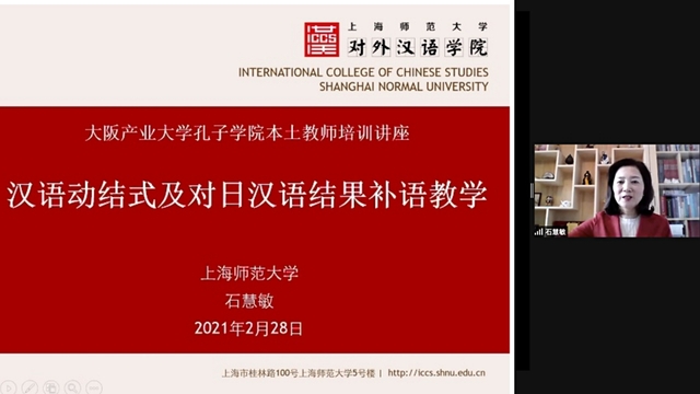 当地时间2021年2月28日,大阪产业大学孔子学院特邀上海师范大学对外汉语学院石慧敏副教授和上海外国语大学国际文化交流学院鹿钦佞副教授举办本土汉语教师线上培训讲座。讲座由大阪产业大学孔子学院副院长春口淳一主持。