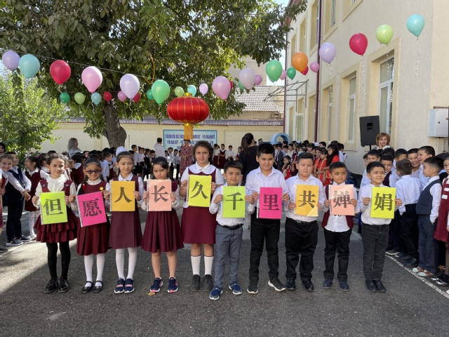 当地时间9月21日,撒马尔罕国立外国语学院孔子学院(简称”撒外孔院“)与当地Intellekt小学共同举行了中秋节庆祝活动,撒外孔院中乌师生代表与该校全体师生参加了活动。
