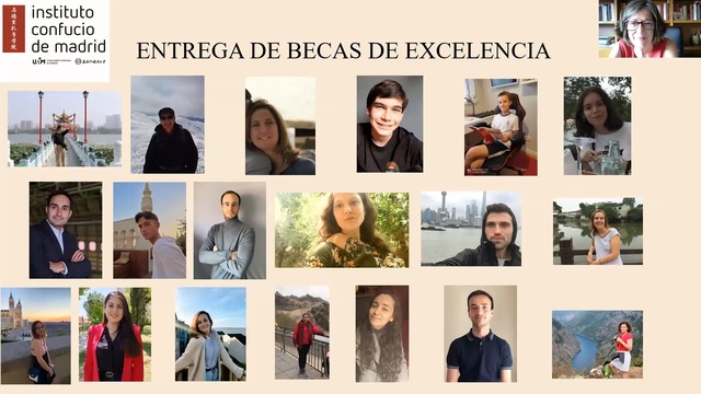 随后,孙歌迪(Gladys Nieto)院长宣读了2020-2021学年孔院优秀学生奖学金的获得者名单。这些学生都是本学年在各级别考试中荣获全班第一名的优秀汉语学习者,其中有在读大学生,也有退休在家的老人;有些人已经去过中国多次,也有人期盼疫情过后能第一次到访中国。