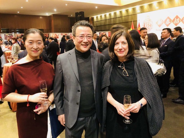 当地时间2019年2月1日,中国驻西班牙大使吕凡及夫人在马德里欧洲之星酒店举行2019年新春招待会。马德里孔子学院外方院长孙歌迪(Gladys Nieto)和中方院长陈旦娜受大使馆教育组钟熙维主任的邀请参加招待会,与旅西华人华侨、留学生、中资机构代表、西班牙友人和中西媒体等宾客近500人一同迎接已亥猪年新春佳节。