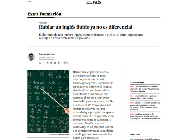 当地时间2025年5月11日,西班牙主流媒体《国家报》(El País)就“能说一口流利英语已不再具有区分度”为探讨主题,采访了马德里孔子学院外方院长杨德(Andreas Janousch),杨德结合孔院实际发表了自身见解。