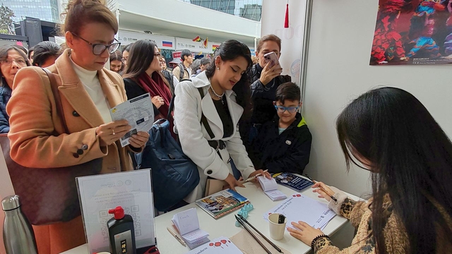 当地时间2025年6月4日至5日,秘鲁天主教大学孔子学院参加了首都利马San Isidro区主办的大使馆文化展,宣传中国语言和文化,开展“中文名字书写”体验活动,吸引大量民众驻足,成为展会现场的一大亮点。