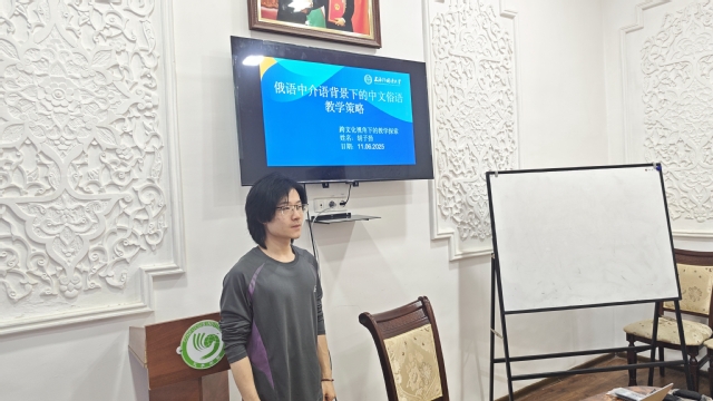 国际中文教育志愿者胡子扬以《俄语中介语背景下的中文俗语教学策略》,聚焦中文俗语教学,结合自身专业优势,提出了俄语俗语类比法和故事情景分析法等教学策略,帮助学生理解记忆并恰当运用中文俗语,促进语言能力与文化素养的同步提升。