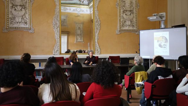当地时间2025年10月27日,意大利那不勒斯东方大学孔子学院在科里利亚诺宫会议厅(Sala Conferenze di Palazzo Corigliano)举办了2025年第九期“孔子俱乐部”文化讲座。本次活动特邀意大利著名汉学家、翻译家玛丽亚·丽塔·马西(Maria Rita Masci)担任主讲,由孔子学院意方院长万丽雅(Valeria Varriano)主持,围绕诺贝尔文学奖得主莫言作品《晚熟的人》意大利文版(Maturare tardi)的翻译与推介展开交流。