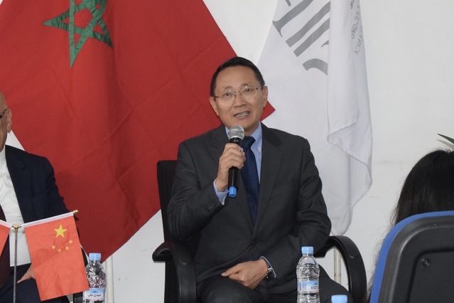 典礼伊始,安纳斯•克塔尼(Anass Kettani)对全体与会者表示热烈欢迎,并在致辞中回顾了中摩两国近年来密切的外交与教育合作,指出中摩两国在多个领域的合作日益加深,为两国青年提供了广阔的发展空间。他特别强调了中文学习在促进双边关系中的重要作用,并鼓励学生把握机遇,深入探索对华商业与文化交往的广阔前景。