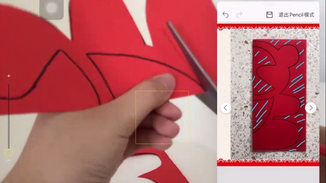 我们还要善于利用平板电脑的分屏功能,在直播剪纸操作的同时展示图样。这样学生们就可以一边参照图样剪纸,一边观看老师的操作了。