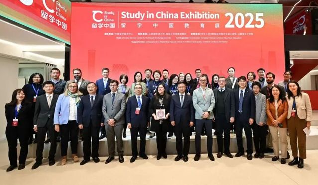 当地时间2025年11月21日,西班牙马德里孔子学院亮相2025西班牙“留学中国”教育展,与来自中国11所知名高校的代表同当地学生面对面交流中国高校的课程体系、科研资源及奖学金政策。活动开幕式上,中国驻西班牙大使馆公使屈浔、“留学中国”教育展代表团团长明廷玺、马德里欧洲大学(Universidad Europea)副校长埃娃·伊卡兰(Eva Icarán)及欧洲大学创意校区(Creative Campus)主任路易斯·卡兰德雷(Luis Calandre)分别致辞,强调教育交流在促进中西文化互鉴中的重要作用。
