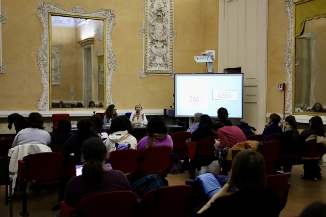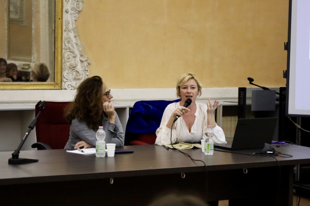 当地时间2025年11月24日,意大利那不勒斯东方大学孔子学院在科里利亚诺宫会议厅(Sala Conferenze di Palazzo Corigliano)举办了第十二期“孔子俱乐部”文化讲座。本次活动由孔子学院意方院长万丽雅(Valeria Varriano)主持,特邀米兰比可卡大学汉学教授、著名翻译家傅雪莲(Silvia Pozzi)担任主讲,围绕中国文学翻译实践与中意文化交流展开深入探讨。