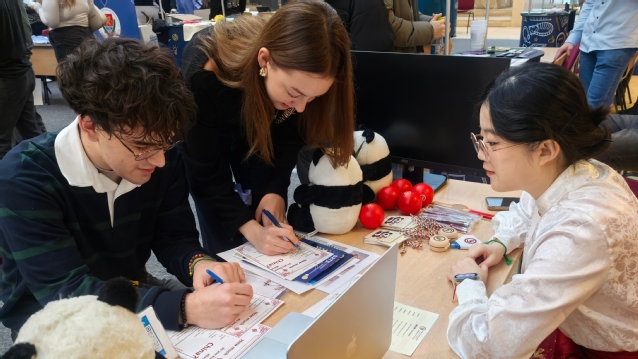 活动前,孔院中方院长陶茜与匈方教学秘书András提前统筹,孔院教师团队完成了方案设计、物料筹备等周密准备。开放日现场,孔院展位凭借鲜明文化元素和丰富互动吸引众多参与者,教师团队为咨询者详细介绍中文课程、HSK考试、赴华夏令营等项目,提供个性化学习建议。