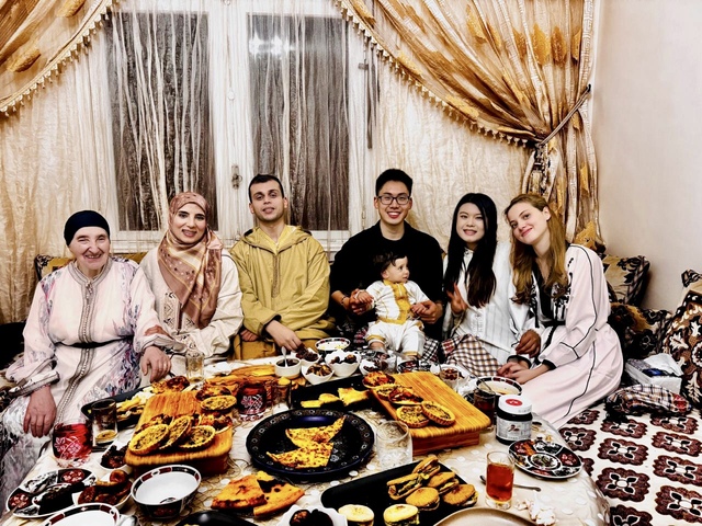 “第一次走出卡萨布兰卡机场,大西洋的海风裹着陌生的气息扑面而来,我拖着行李默念:‘从今天起,这里就是我的新课堂。’”初到摩洛哥的日子,满是新鲜与挑战。搬宿舍、办居留的琐碎,饮食与交通的磨合,让“好事多磨”成了那段时光最贴切的注脚。万幸的是,我从未孤单——中外方院长的悉心指导、同事们的热情相助,像一束束光,照亮了我适应异乡的路。学着走进麦地那老城,和摊主用法语寒暄;接过街角递来的薄荷茶,感受当地人的热忱。不知不觉中,我开始下意识地将这些场景转为教学素材,琢磨着“怎样能变成课堂上的中文对话”。就是这份对教学的敏感度,让我从一名“异乡过客”,真正成为了连接当地生活与中文课堂的“创作者”。