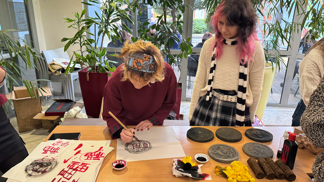 本次展览共设置四大主题区域,为参观者呈现中国城市与乡村建筑文化的多样魅力。国际中文教师王颖借建筑模型解析传统结构工艺;吕宜文带领体验瓦当拓印与书法,解锁建筑美学密码;胡安与志愿者通过鲁班锁拼装,展现榫卯技艺的匠心智慧;张远征以武汉新旧影像对比,呈现城市建筑与生活文化的融合。