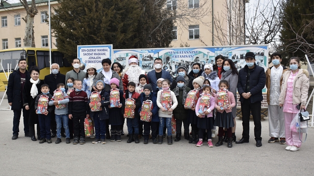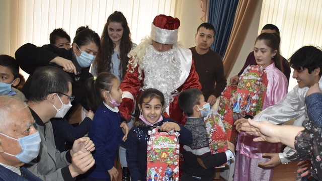 当地时间2020年12月25日,撒马尔罕国立外国语学院孔子学院乌方院长萨法洛夫教授、中乌教师和学生代表一同前往撒马尔罕州61中学,看望慰问该校的听力障碍儿童。