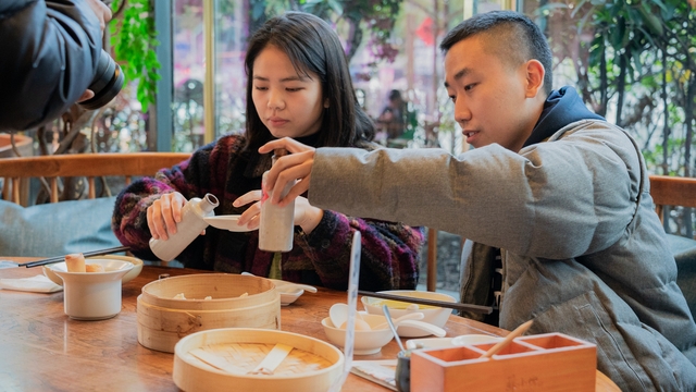 北京时间1月20日上午九点,第二次外景直播课《魔都:现代生活体验》准时开始。两位主持人在洋溢着青春时尚气息的大学路上,向学员们介绍了上海的特色早餐、特色茶室等。