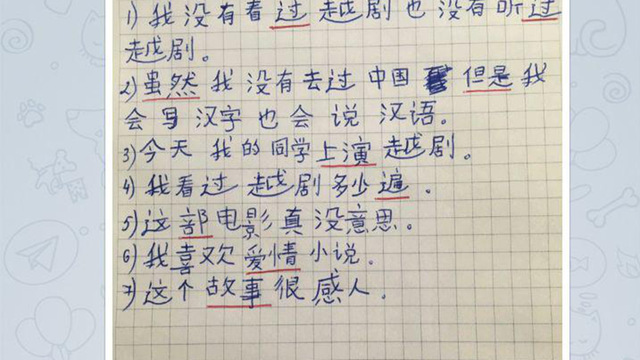 就这样,我和学生懵懵懂懂地在Telegram上开启了疫情之下“别样”的汉语“教”和“学”的旅程。Telegram软件没有视频功能,我和学生,只能通过语音和汉字传递信息。每次上课,我会把语言知识点、课堂练习以及提前录制好的课文生字录音发到群里,然后开始发语音讲解。学生通过发语音提问,完成课堂练习。课后,学生把背课文的录音、作业拍照发到群里,我在群里批改并进行纠错。对于个别学习困难的学生,课后我单独通电话进行辅导。