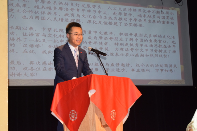 中国驻摩洛哥大使馆文化参赞刘琛罡、哈桑二世大学校长侯赛因·阿兹杜格出席活动并分别致辞,肯定孔院在中文教育和人文交流中的成果,提及孔院自2012年成立以来累计培养学生逾万人、举办文化活动数百场,已成为中摩交流重要平台。晚会节目精彩纷呈,舞蹈、歌曲、器乐演奏、太极表演等节目轮番登场,融合中摩文化元素的压轴节目《锦绣丝路,中摩共舞》将现场气氛推向高潮。