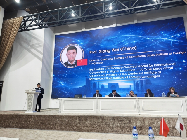 当地时间2026年2月27日,撒马尔罕国立外国语学院举办主题为“高等教育国际合作发展的现代模式:学术流动、联合培养项目、学历资格互认与国际质量保障”国际学术与实践会议。撒马尔罕国立外国语学院校长哈里科夫·巴哈迪尔(KHOLIKOV BAKHODIR)出席会议开幕式并致辞。撒马尔罕国立外国语学院孔子学院(以下简称“撒外孔院”)中方院长项伟及教师代表受邀出席。
