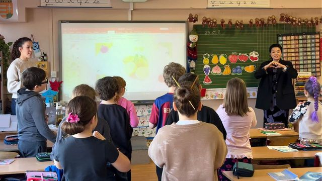 当地时间2026年2月12日,匈牙利赛格德大学孔子学院在下属孔子课堂科苏特小学开展中文公开课,国际中文教师林振男与国际中文教育志愿者钱姿霏分学段开展示范教学,展示中文课程特色,助力学校招生。