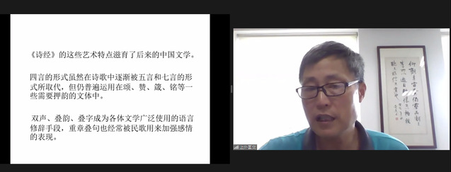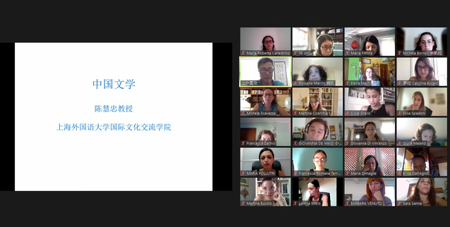 课程的首场专题讲座《中国文学史》由陈慧忠教授主讲。陈慧忠从《诗经》的名篇《关雎》开始,带领学员们回顾了丰富多彩的中国文学史。从先秦、汉唐到宋元、明清,再到中国现当代文学,陈慧忠旁征博引,展示了中国文学史的累累硕果。课后,学员们与陈慧忠老师进行了热烈的互动,他们纷纷表示这是一堂很有意思的课,提高了他们对中国文学的兴趣。陈老师也对学员们提出了期望,他期待学员们多做比较文学的研究,把更多中国文学带到意大利,让意大利人了解中国文学。