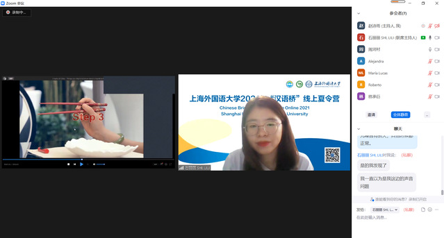 北京时间2021年8月10日至8月15日,上海外国语大学2021年“中西文明交流互鉴”线上夏令营组织了第一周的三次线上直播中文课程,来自西班牙共计六十余名学员参与。