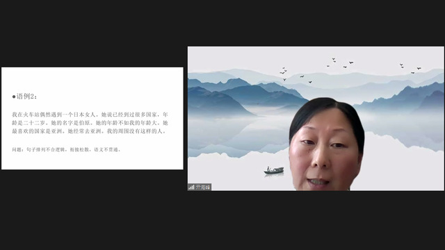 亓海峰副教授在《汉语写作》课中分享了自己多年的写作课教学经验,用大量的作文实例讲解了写作教学的目标、阶段、重点和要点。亓老师与学员们在课堂上实时修改作文范例,课堂互动效果良好。