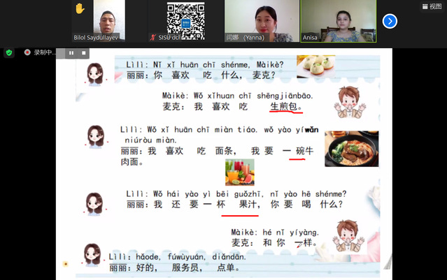 夏令营设置了线上中文直播课、中俄双语《带你游“魔都”》《魔都:漫步上海》视频录播课、中国文化讲座和文化沙龙等。在夏令营中,有两位非常特别的学员:一位是仅仅学习了半年中文就能够流利表达的阿妮莎,一位是带着四个月大的女儿一起参加夏令营学习的撒外中文专业教师乌玲珑。细数她们学习中文的故事,可以从上一代人说起。