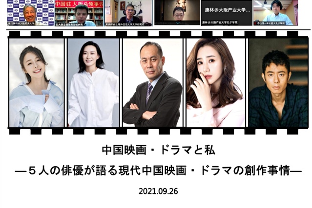 当地时间9月26日,为纪念一年一度的“孔子学院日”,大阪产业大学孔子学院、中国驻大阪总领事馆教育处及上海外国语大学文学研究院共同举办了“中国影视与我”线上活动,特邀活跃在中国演艺界的五位演员,分享各自与中国影视行业共同成长的故事,并与观众互动。中国驻大阪总领事馆领事谭建川先生、周炼女士、中日新报新闻社主编孙莉女士等出席了本次活动。