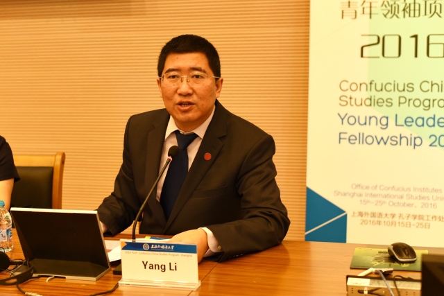 2016年10月16日上午,“孔子新汉学计划”2016青年领袖项目欢迎仪式在上海外国语大学虹口校区高级翻译学院模拟会议室举行。