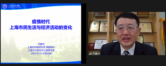 当地时间2022年3月13日,日本大阪产业大学孔子学院线上举办《疫情时代上海市民生活与经济活动的变化》讲座。上海社会科学研究院教授、上海文化研究中心首席专家何建华应邀主讲,大阪产业大学孔子学院副院长春口淳一主持。