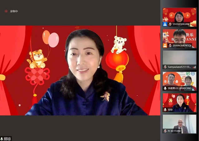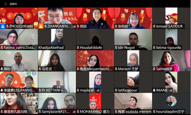当地时间2022年1月30日,摩洛哥哈桑二世大学孔子学院举行2022年线上春节文化活动开幕式,孔子学院外方院长安纳斯•克塔尼(Anass Kettani)、中方院长郑琼、孔院国际中文教师、线上教师代表以及线上线下学生代表等150余人参加。