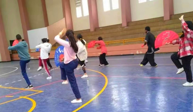 开课当天,学生一早就来到体育馆门口等待。在众多学生中,有一道身影格外引人注目,那就是穿着太极服来上课的安览同学(EZZINAOUI)。包丽央通过询问,得知他非常热爱中国武术,此前曾学习过五禽戏。说到这,他兴奋地比划起来,引来老师和同学们的一阵称叹。学生们纷纷表示中国武术简直太酷了,他们也迫不及待地想要开始学习。
