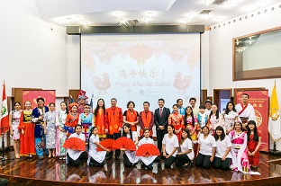 “神猴辞旧千家同喜,金鸡闹春万户皆福”。秘鲁天主教大学孔子学院于当地时间2017年1月26日中午,在秘鲁天主教大学法学院礼堂举办了一场隆重而热闹的春节联欢活动。中国驻秘鲁大使馆文化参赞朱晓燕女士,秘鲁天主教大学孔子学院秘方院长邓如朋先生、中方院长朱玉山先生,孔子学院全体教职工及部分学生,部分周围社区居民及多家媒体记者等,近四百人参加了此次“喜迎金鸡”的春节庆祝活动。