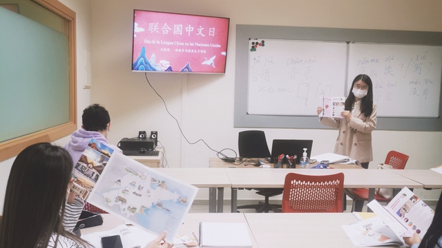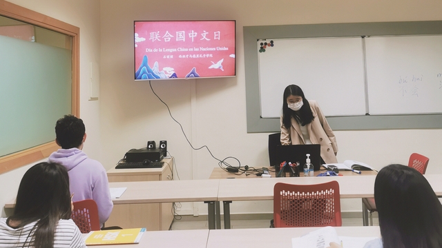 当地时间2022年4月21日,为庆祝第十三个“联合国中文日”,西班牙马德里孔子学院在Nivel 1班级开展了“联合国中文日”主题课。孔院国际中文教师石丽丽介绍了“二十四节气”“仓颉造字”的典故以及“联合国中文日”的由来等。