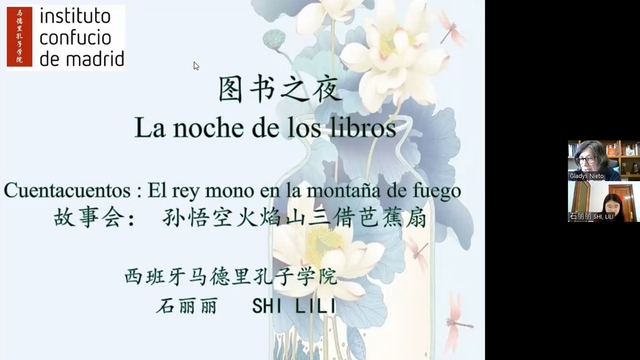 当地时间2022年4月21日,为庆祝“世界读书日”,西班牙马德里孔子学院积极参与马德里大区“图书之夜”活动,特举办“图书之夜:中国故事会”专题活动,由孔院国际中文教师石丽丽讲述“孙悟空三借芭蕉扇”经典故事。
