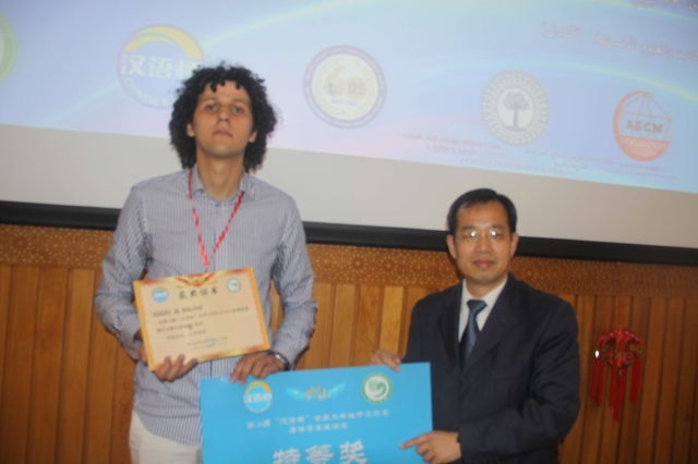 中国驻摩洛哥大使孙树忠先生全程出席了本次比赛并为特等奖选手陈安忆同学颁发了奖状和奖品,并鼓励他再接再厉,争取在汉语桥决赛中取得优异成绩。