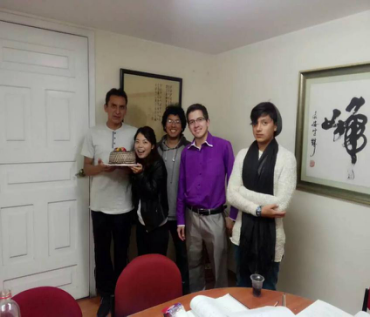 后来,在跟学生的学习和慢慢相处的过程中,我们都成为了很好的朋友。记忆最深的一次就是我刚来厄瓜多尔没多久就迎来了我的23岁生日,班上的学生精心“密谋”为我策划了一场生日聚会,那天晚上上课,就像往常一样,没什么区别,但是上课上到一半,年龄最大的学生马丁突然从桌子下面拿出一把水果刀来,我顿时傻了眼,吓得第一反应是小声地用汉语问他:你要干嘛!但是另外一个学生就又从桌子下面拿出一个大大的蛋糕,他们一起给我唱起《生日快乐歌》,这时我才反应过来,他们突然的惊喜还是让我没出息的掉眼泪,感动的不知所措。那一刻觉得付出的一切都是值得的,也让我重新审视“为人师表”的重要性,感觉到了肩上传播中华文化的重任。
