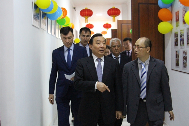 上午10点45分,王晨副委员长一行抵达撒马尔罕孔子学院。在撒马尔罕国立外国语学院校长图赫塔西诺夫、撒马尔罕孔子学院乌方院长萨法洛夫和中方院长刘涛的陪同下,王晨副委员长一行参观了孔院。王晨副委员长详细了解了撒马尔罕孔子学院发展的历史、开设的课程、招生数量、文化活动、图书教材等情况。
