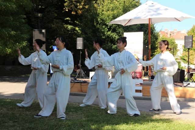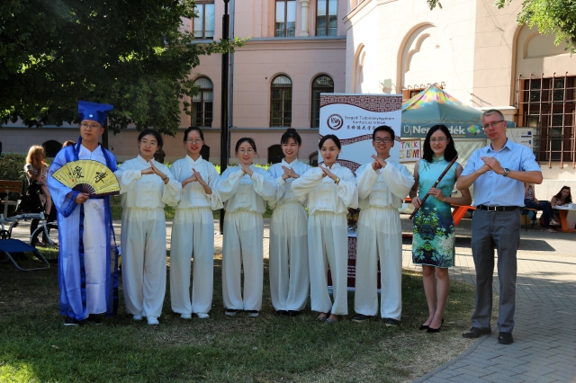 This is the first performance given by all of the 8 new Chinese volunteer teachers and 2 professional teachers. They not only brought this amazing Tai Chi show to students and citizens of Szeged, but also made their first contribution to the spreading of Chinese in the Confucius Institute abroad. It is believed to be a great benefit for Hungarians to learn more Chinese and Chinese culture.