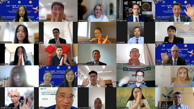 当地时间2022年5月27日,2022年“汉语桥”世界大学生中文比赛匈牙利赛区比赛暨小学生“中文秀”活动线上举行。此次活动由中华人民共和国驻匈牙利大使馆主办,匈牙利赛格德大学孔子学院承办。中国驻匈牙利大使齐大愚、大使馆教育参赞陈昆和赛格德大学副校长克拉拉·盖伦出席并致辞。