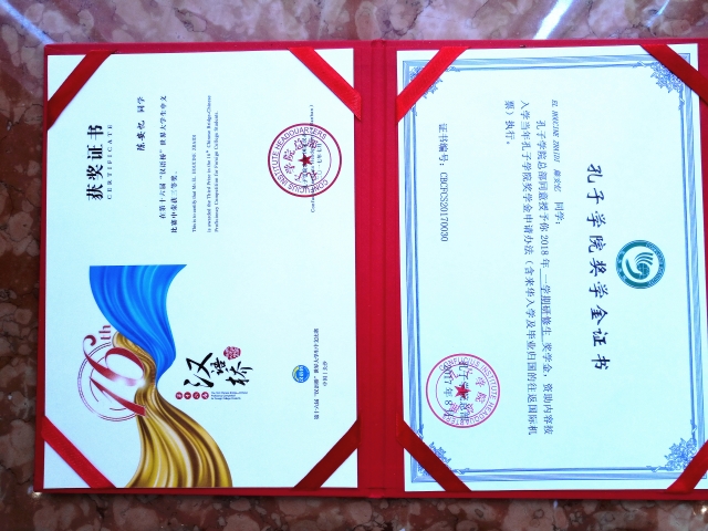 陈安忆同学目前是摩洛哥哈桑二世大学孔子学院二年级学生,同时也是摩洛哥哈桑二世大学艾因谢高文学院中文专业一年级学生。在本年度摩洛哥赛区的汉语桥比赛中,他战胜了来自摩洛哥全国各地的优秀汉语学习者们,荣获该比赛的特等奖,并代表摩洛哥参加在长沙举行的汉语桥年度总决赛。