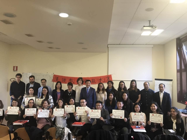 10月12日至13日,中国驻意大利大使馆教育处在博洛尼亚大学孔子学院举办了第五届意大利暨圣马力诺汉语教学技能大赛。中国驻意大利大使馆教育处罗平先生、意大利各孔院的中、意院长等出席了本次活动。本次大赛还邀请了来自意大利和圣马力诺的13家孔子学院的教师和志愿者教师们前来观赛。