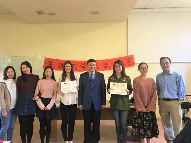 本次大赛的主要目标之一是搭建切磋教学技能的平台,激励汉语教师们不断更新教学观念。所以,除参赛教师外,我院其余汉语教师也一同对此次教学技能大赛进行了观摩与学习。在为期两天的比赛中,新老师们也从比赛选手的展示中得到了很多教学启示。徐海铭院长在接受中国国际广播电台意大利教育分台的记者张瑾采访时说,意大利学生大多把汉语作为第二外语或者第三外语,他们已有的语言知识会在一定程度上干扰他们的汉语学习。因此,教师们在备课和上课时需要充分考虑这一因素。