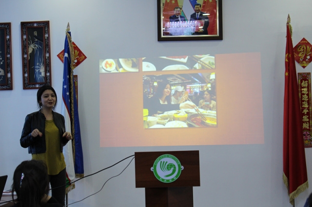 三位同学向孔院学生们介绍了中国的高铁、共享单车等出行方式;还介绍了美团外卖、淘宝天猫、微信支付等多种购物和付款的途径。孔院学生们听得津津有味,对中国的文化与生活充满了向往。