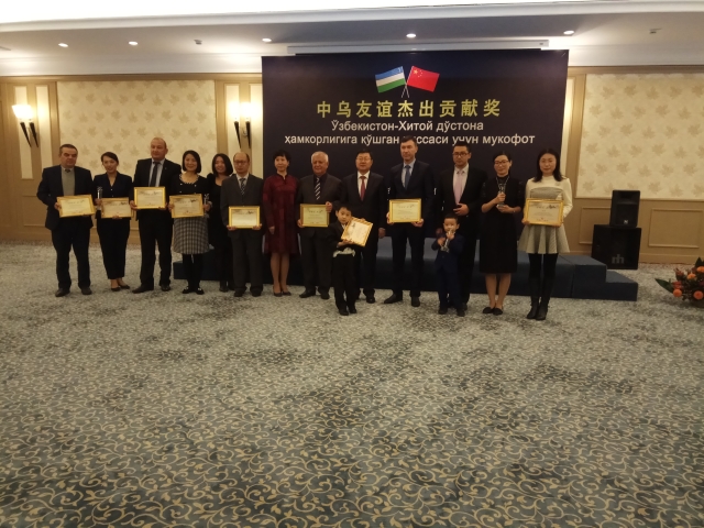 2017年11月5日,中国驻乌兹别克斯坦大使孙立杰先生向在撒马尔罕国立外国语学院孔子学院工作的我校教师刘涛、左菲菲、范基顺等人颁发了“中乌友谊杰出贡献奖”。