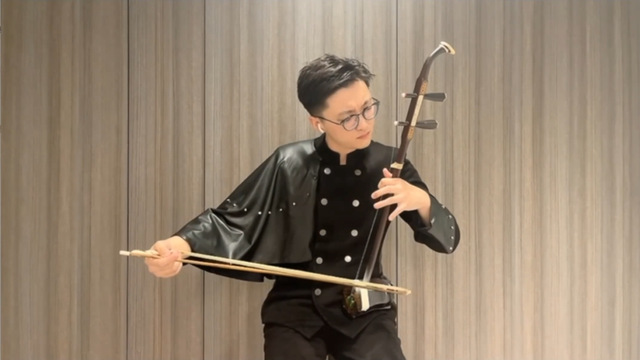 讲座下半场由上海音乐学院的二胡演奏家周墨涵老师主讲。他从二胡的历史道起,进而为学员们展示和讲解了二胡的基本构造、演奏技法等。