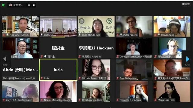 意大利那不勒斯东方大学孔子学院意方院长Paola Paderni表示,参与本次参加夏令营的意大利学员热情高涨,既有在校学生、热爱中文的社会人士,也有本土中文教师。通过两周的学习,他们都提高了中文水平、加深了对中国文化的理解,也在和各国学员的交流互动中搭建了文化沟通的桥梁。摩洛哥哈桑二世大学孔子学院中方院长郑琼则说,通过Vlog她看到了学员们学习中文的热情,以及拥抱世界、努力了解他国文化的开阔视野,希望此次夏令营之后学员们继续努力学习,未来有机会到上外亲身感受。匈牙利赛格德大学孔子学院中方院长罗平感谢上外“汉语桥”线上夏令营给学员们带来的“坐地日行八万里”的美妙体验,希望大家有机会再次参加明年的夏令营。西班牙马德里孔子学院中方院长章艳发来视频,对学员们顺利完成两周夏令营学习、取得进步表示祝贺,感谢在炎热夏天里孔院工作处准备的丰富课程。