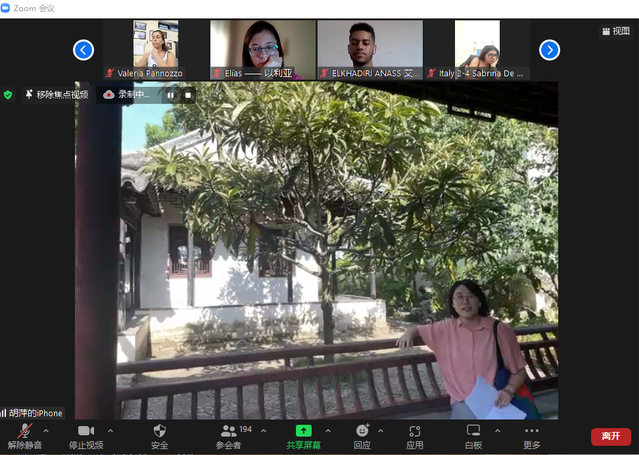 8月22日,“云游中国”户外实景直播在学员们的期待中正式开始。外景团队带领摩洛哥学员们实时畅游苏州园林,以期在呈现“多彩江南,园林中国”建筑文化的同时穿插中文教学,弥补同学们因为疫情而不能亲身来到中国遗憾。主播胡萍老师携摄制组赶赴苏州园林,通过镜头为学员呈现了典雅古朴的拙政园景观,细致讲解苏州园林的历史和建筑风格,阐释江南生活的特殊一面。随着摄制组的移步换景,学员们仿佛穿越了空间的阻隔,共同凝神于此刻的亭台楼榭之间。实时留言区内满是“太美了”“真希望我现在就去苏州”这样的惊叹和赞美。