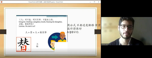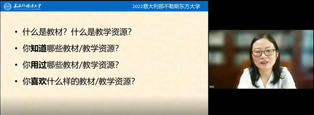2022年8月22日至26日,上海外国语大学2022年“中文教与学”意大利中高级团组“汉语桥”线上夏令营第二周课程继续进行。第二周课程主要从教材与教学资源、词汇与语法教学、书法、中国文化史、中国国情与文化等方面出发,瞄准本土中文教师特色定位,围绕打造准中文教师的目标开展。