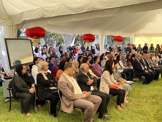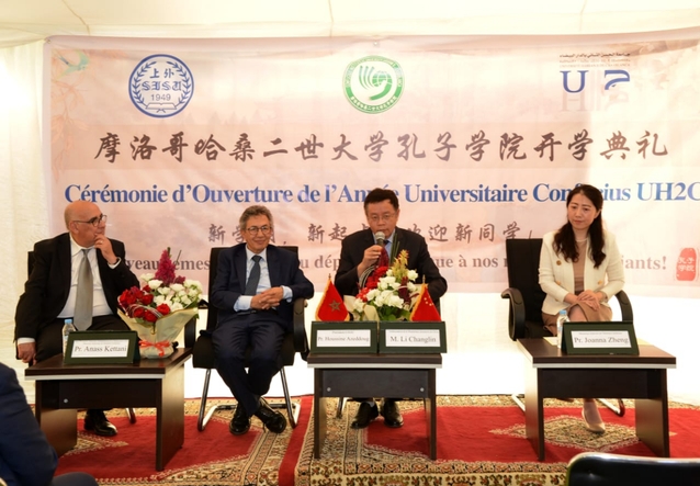 当地时间2022年10月11日,摩洛哥哈桑二世大学孔子学院举办2022-2023学年开学典礼。出席典礼的嘉宾有中国驻摩洛哥大使李昌林、文化处参赞陈冬云,摩洛哥哈桑二世大学校长侯赛因·阿泽杜格(Houssine Azeddoug)、副校长拉希德·赛乐(Rachid SAILE)、副校长兼孔子学院摩方院长阿纳斯·克塔尼(Anass KETTANI)、艾因谢高文学院院长穆拉德·马霍布(Mourad MAWHOUB),孔子学院中方院长郑琼、中摩友好协会会长穆罕默德·哈利勒(Mohamed Khalil)以及非洲投资与发展银行基金会经理奥马尔·艾特·穆巴拉克(Omar Ait Mbarek)等。此外,孔子学院四位国际中文教师与一百多名学生代表也参加了此次开学典礼。